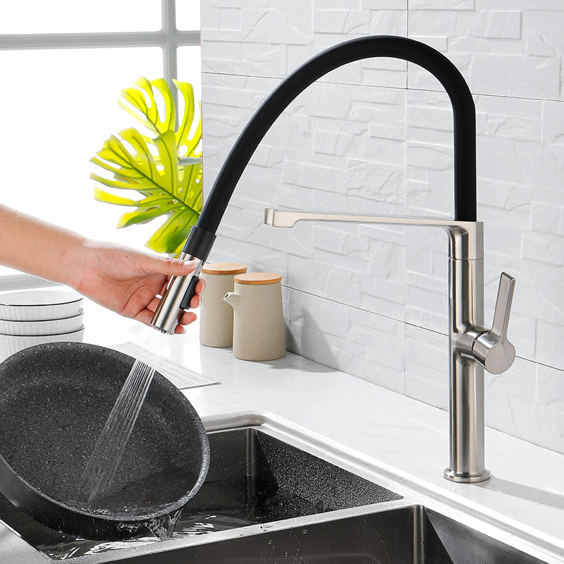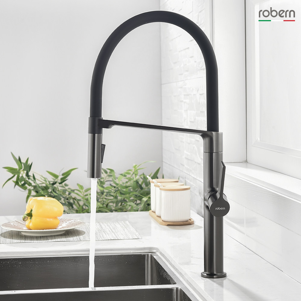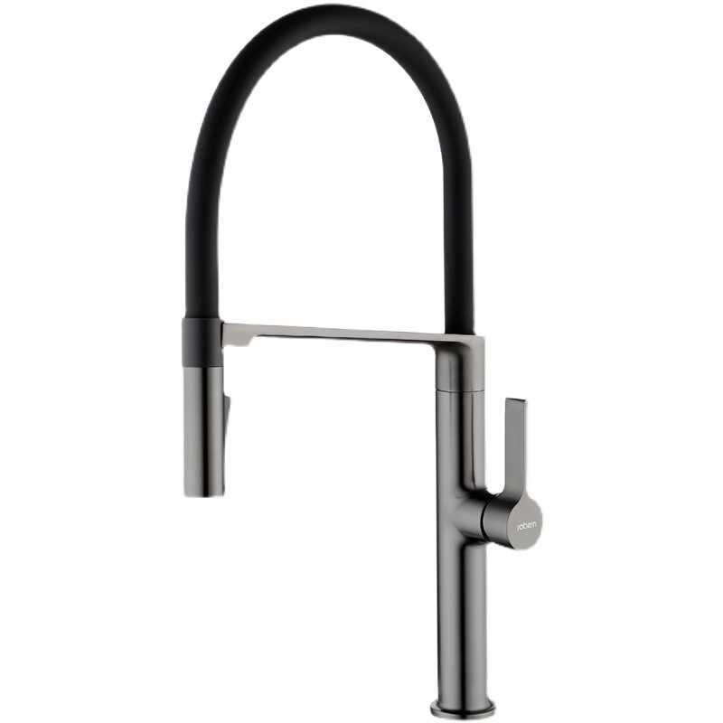 robern gun grey full copper pull-out kitchen tap hot and cold wash basin spring telescopic high throwing sink tap