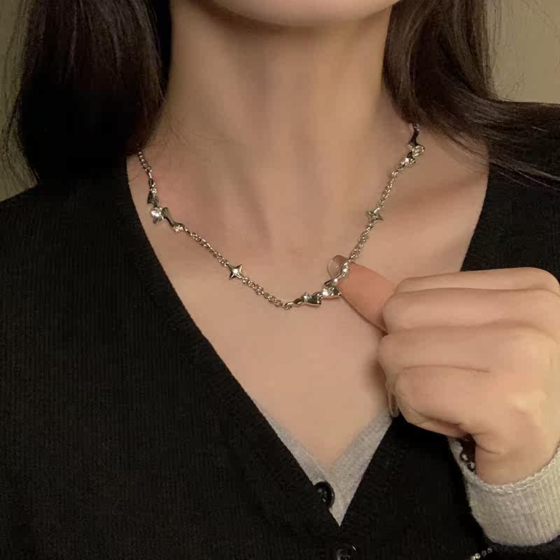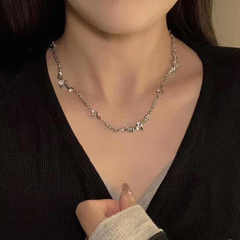 South Korea's light luxury zircon star stitching necklace female net red advanced design clavicle chain cold wind all-match necklace