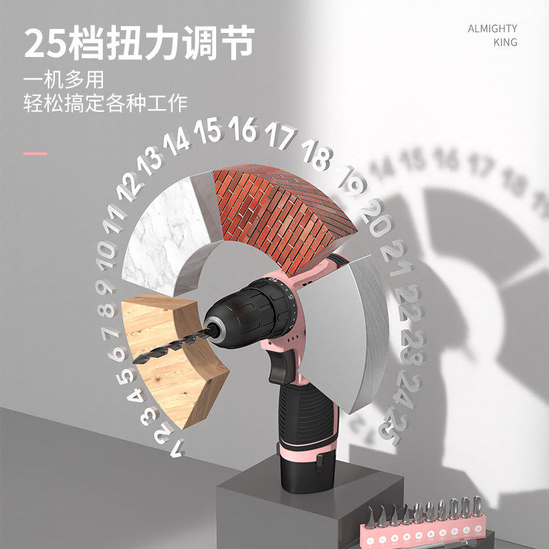 (Inplugged with the customer service link) Black Pink Fairy 12V Electric Drill Suit Black Pink Fairy 12V Electric Drill Suit Clean 3 Pieces Of Black Powder 12V Electric Drill Suit Black Powder Tool