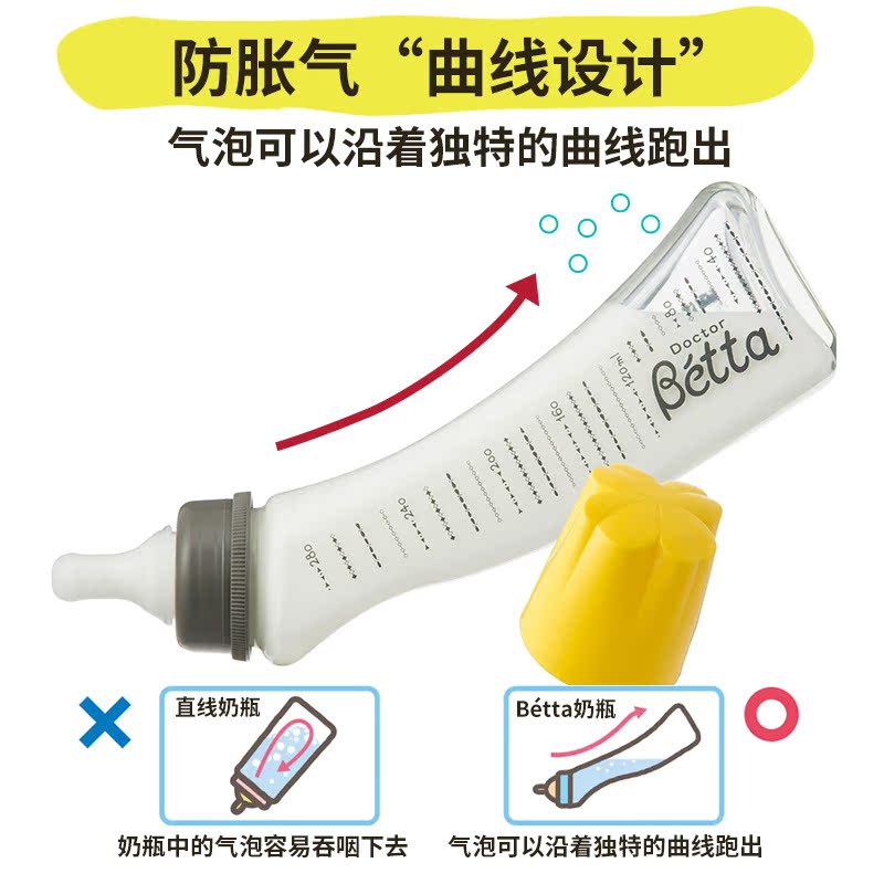 Betta glass bottle newborn baby anti-choking milk anti-flatulence Japan imported large-capacity 280ML weaning bottle