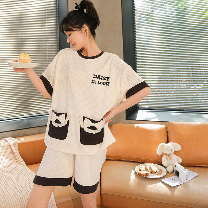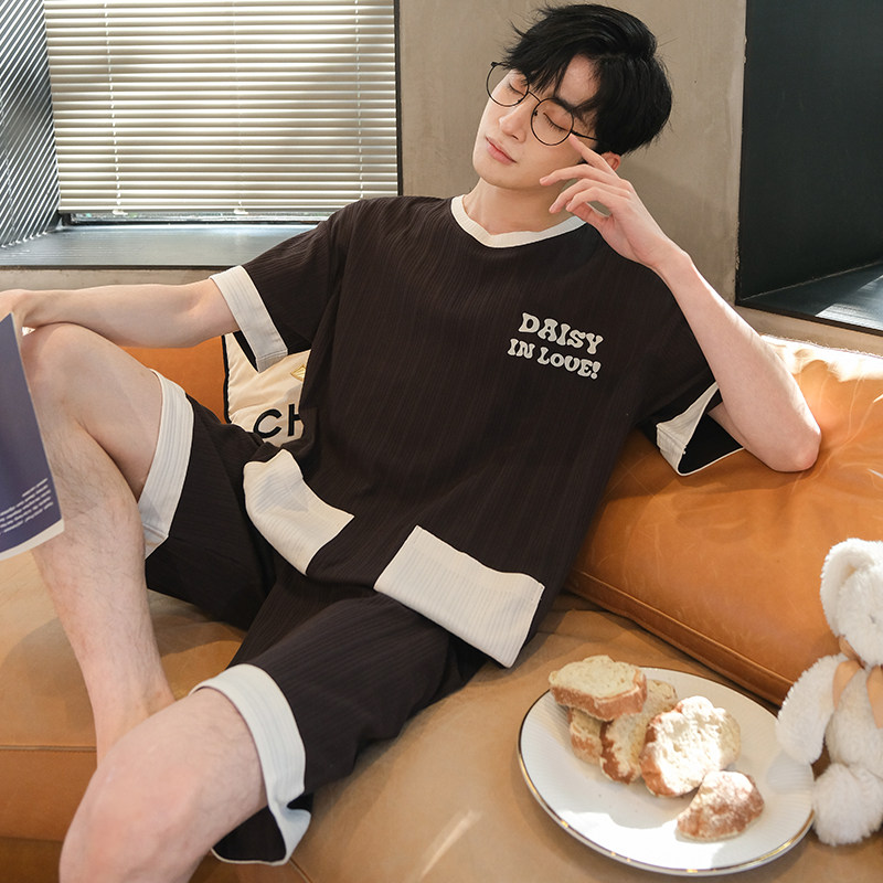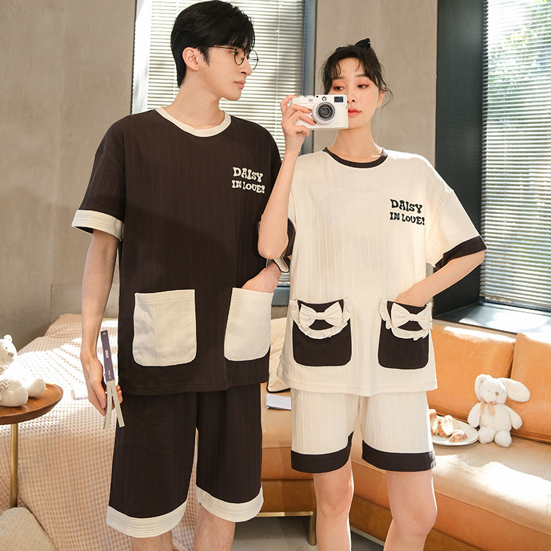 Couples Pyjamas Women's Summer Short Sleeve Knit Cotton Korean Version Sleeve Head Men Outwear Sweetness Casual Home Suit Suit