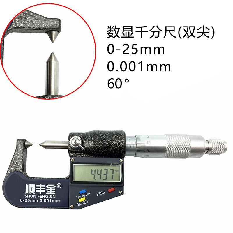 Shunfeng gold digital display outer diameter micrometer double pointed 0-25mm accuracy 0001 spiral micrometer high precision