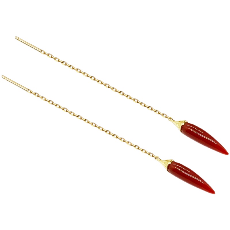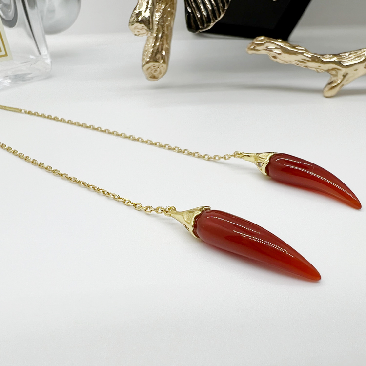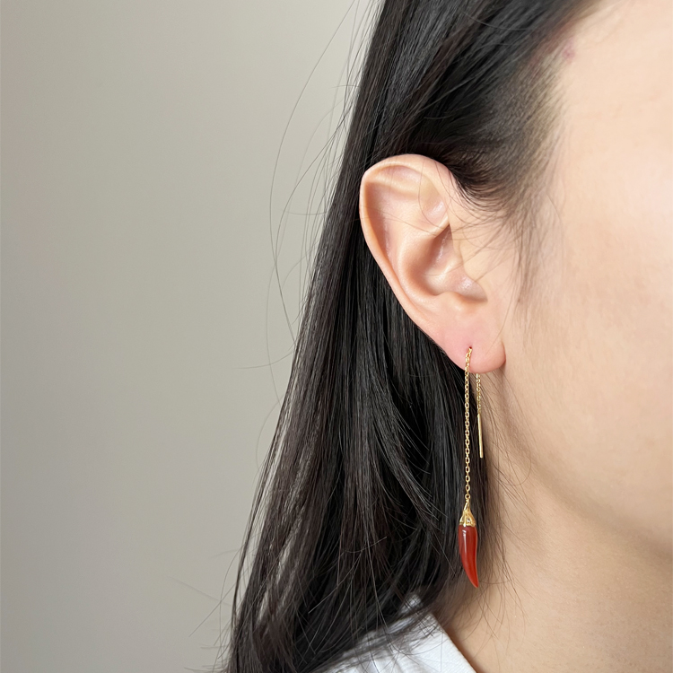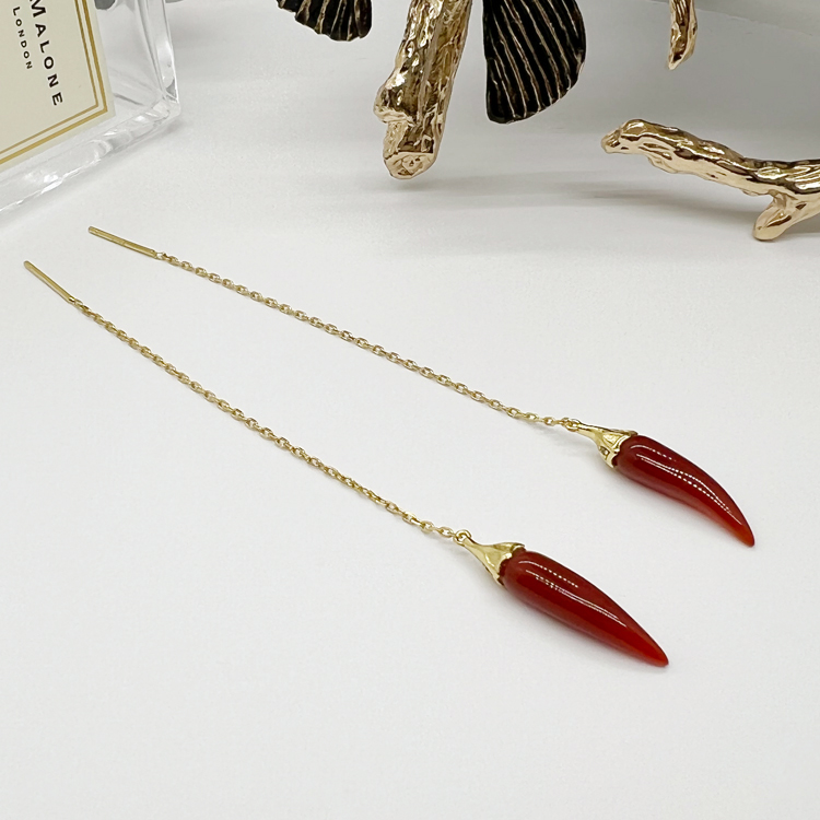 BM jewelry S925 silver red small pepper earrings medium and long version agate earrings niche original tassel earrings women's models