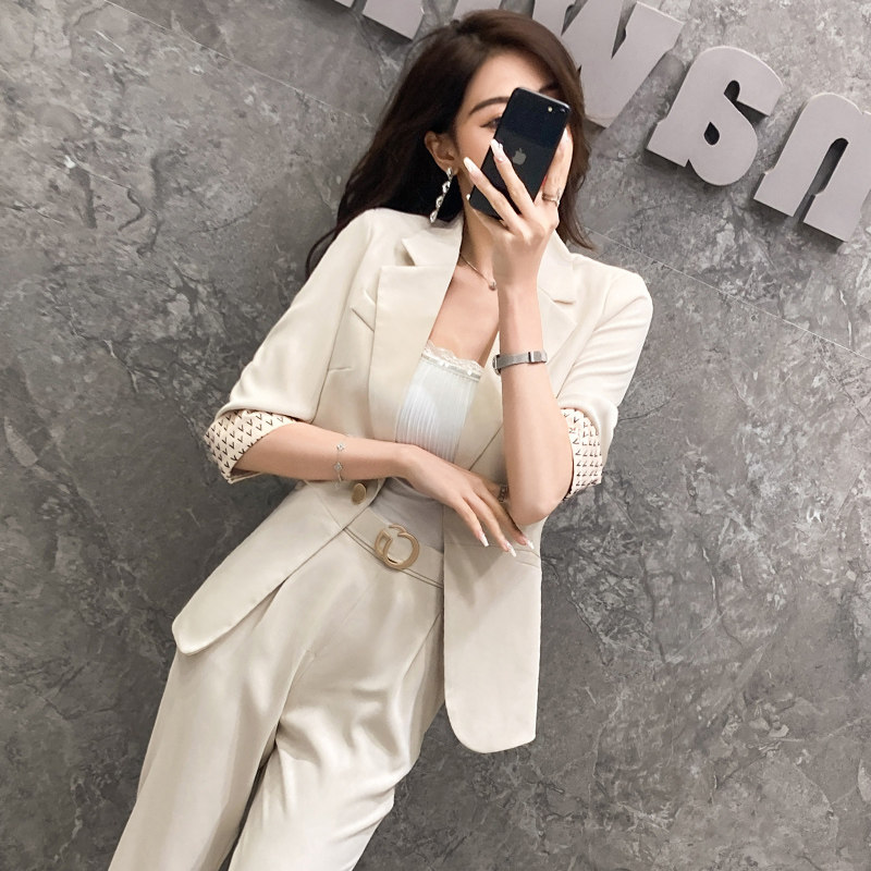 Net red small suit female 2022 spring and summer new sleeve Han edition leisure slim OL to work suit thin suit