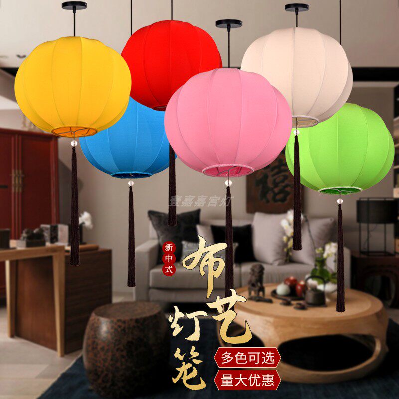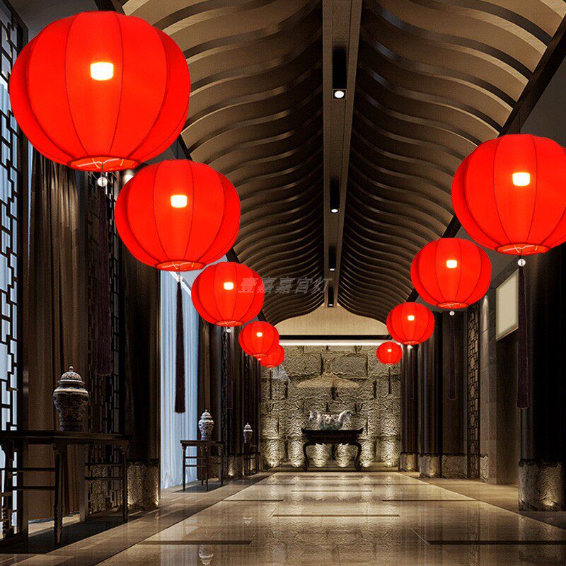 Chinese-style round fabric chandeliers, hot pot shop, tea house, hotel, classical planet lamps, antique hand-painted custom red lanterns