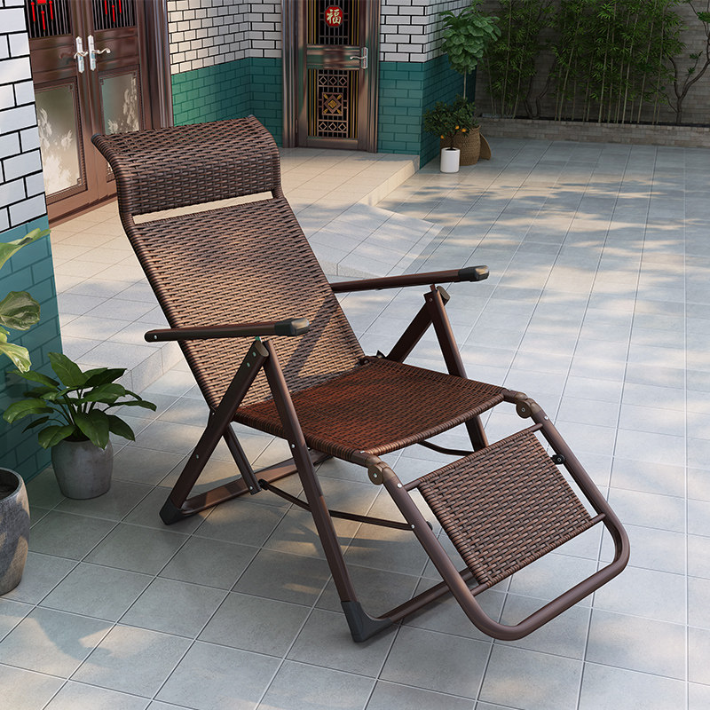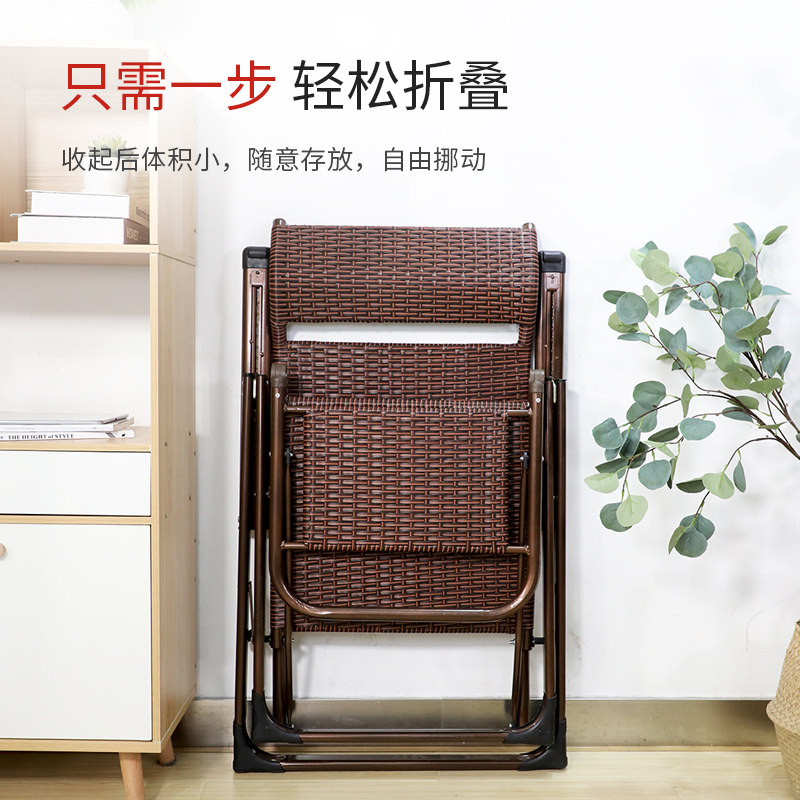 Ruishida Rattan Chair Recliner Folding Lunch Break Balcony Home Leisure Chair Lazy Beach Chair Siesta Backrest Chair