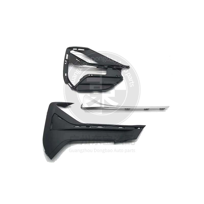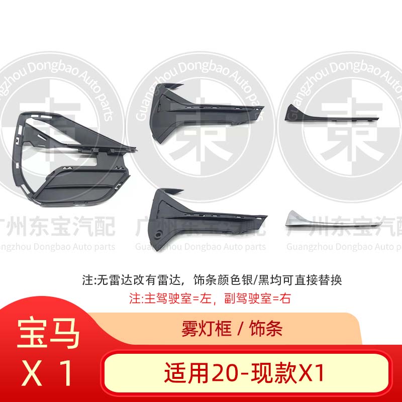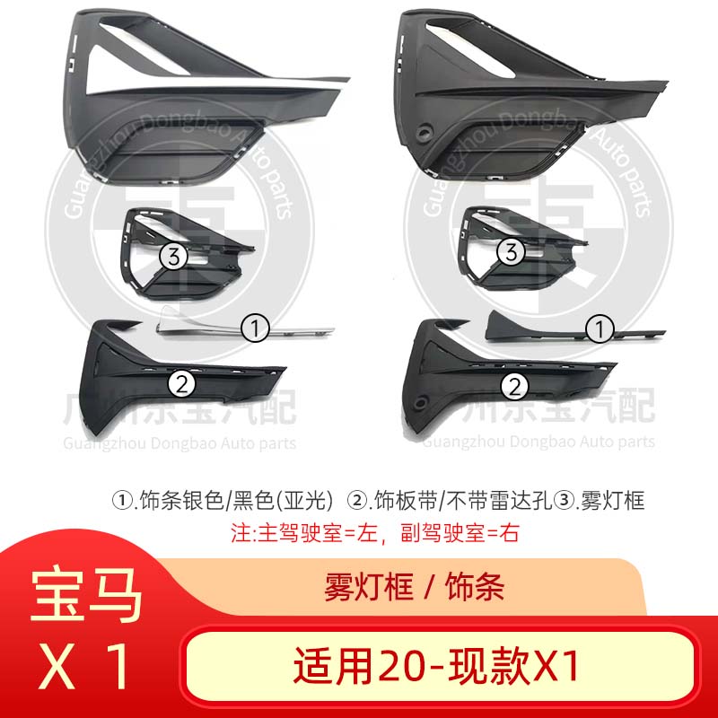 Silver Trim Strips Left Brand Silver Color Accessories Right Brands Black Accessories Left Brands Black Trim Strips Right Brand Plaque to the left Brand plaque Right Brand with radar decoration