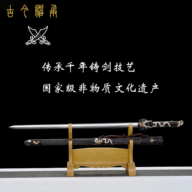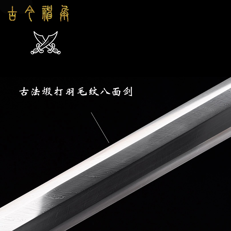 Longquan ancient and modern sword hand-forged one sword pattern steel feather pattern dragon king sword eight-sided sword unedged
