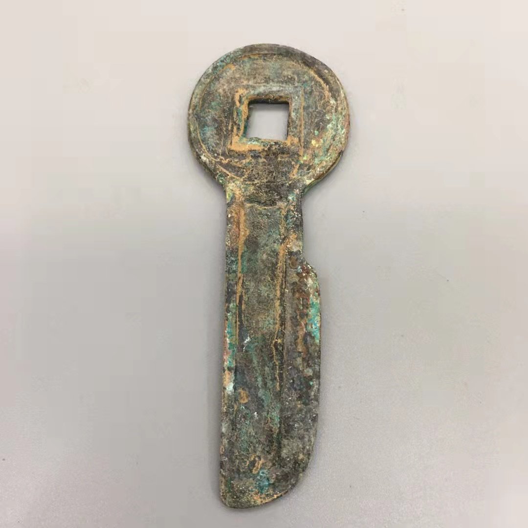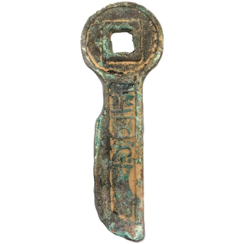 Ancient coin copper Money collection Western Han Wang Mang Knife Coin Key Coin Knife flat five thousand Alien coin fine green embroidered bag paste