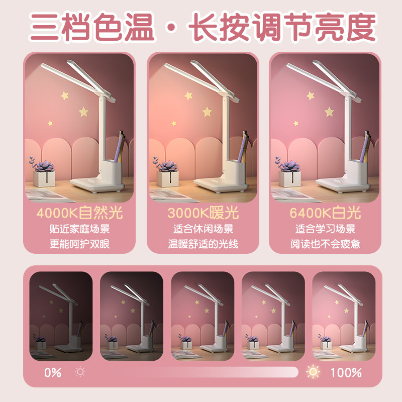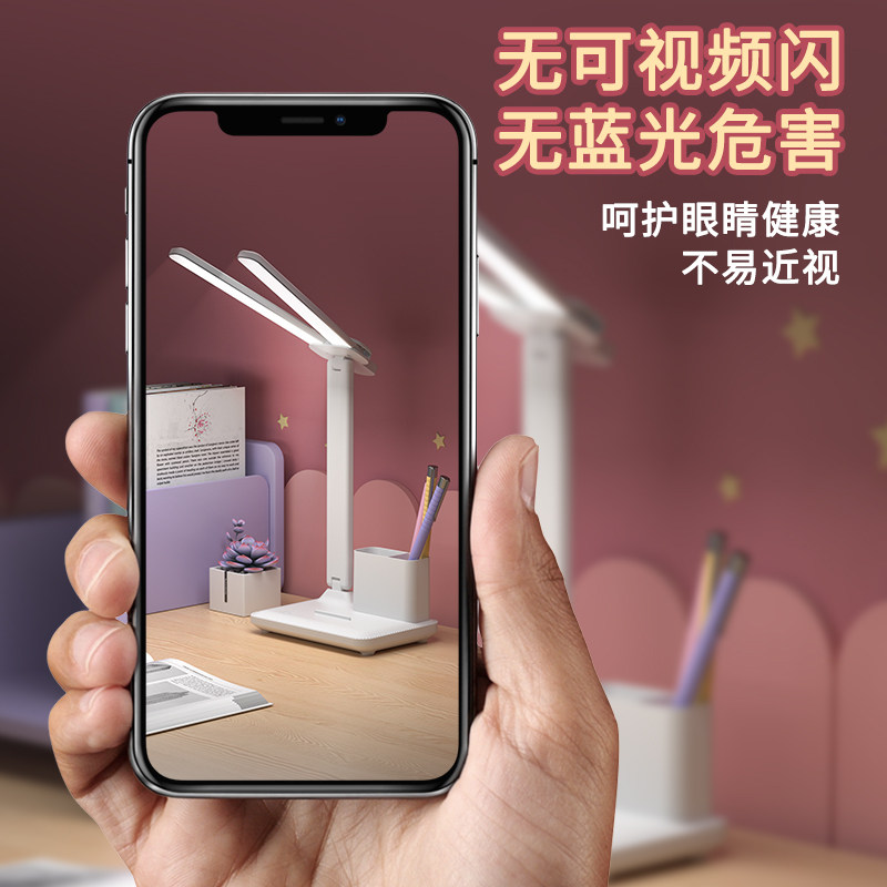 Collection and purchase, free five-year warranty + charging cable, only replacement, no repair, charging and plug-in dual-use, no stroboscopic, no blue light, vision protection, double-headed desk lamp, double eye protection, efficient study, three-color