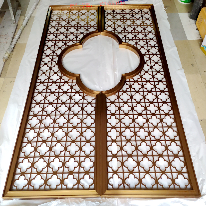 Custom European-style Stainless Steel Screen Mesh Red Light Extravagant Partition Metal Hollowed-out Carved-out Living Room Decorative Flower