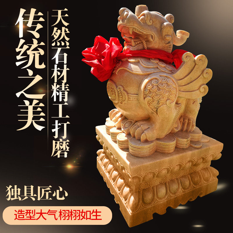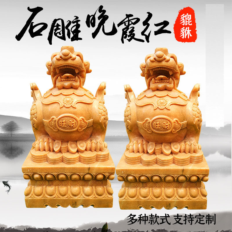 Stone carving leopard A couple of tricks to the property of the late Xia Hongqing Red Green Stone Door Pier Stone Drum Kirin Villa Entrance to the Town Residence Gods Beast Pendulum