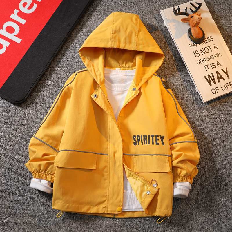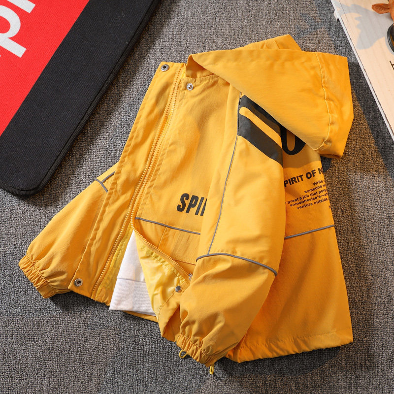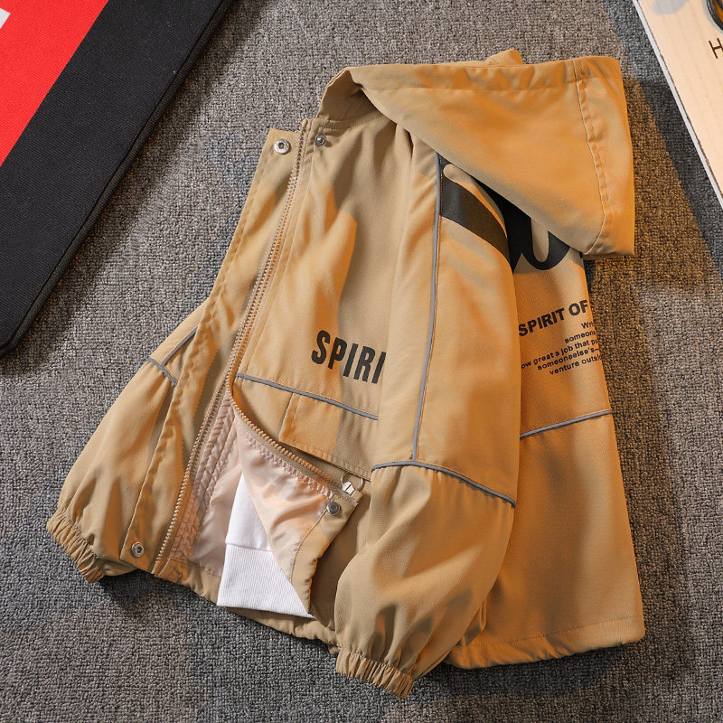 Children's clothes boy thin coat spring autumn money 2023 new CUHK Fairy Fried Street Jacket Boy Spring Clothing with cap windsuit
