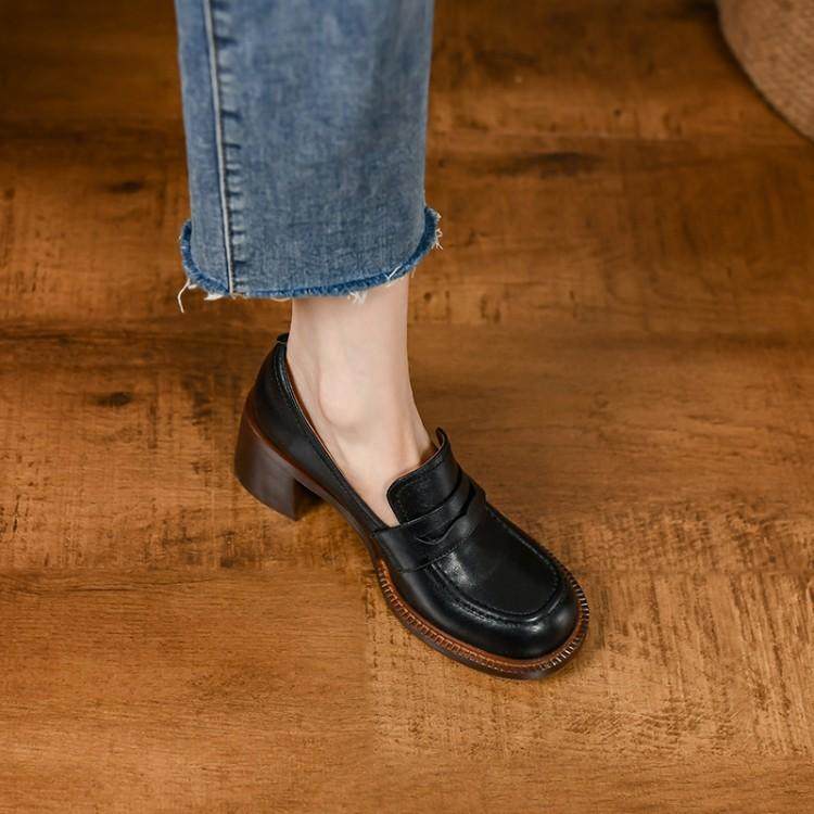 Shake-up Little Red Book Recommended 2022 Summer 100 hitch genuine leather retro pure color High with Lefort women's shoes