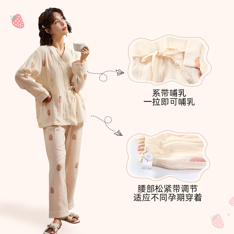 The Jing Ki Moon Subsuit Fall Thin Section Postpartum Pure Cotton Cotton Cloth Two Sets Maternal Breastfeeding Breastfeeding Pregnant Woman Sleepwear Spring Autumn-Taobao