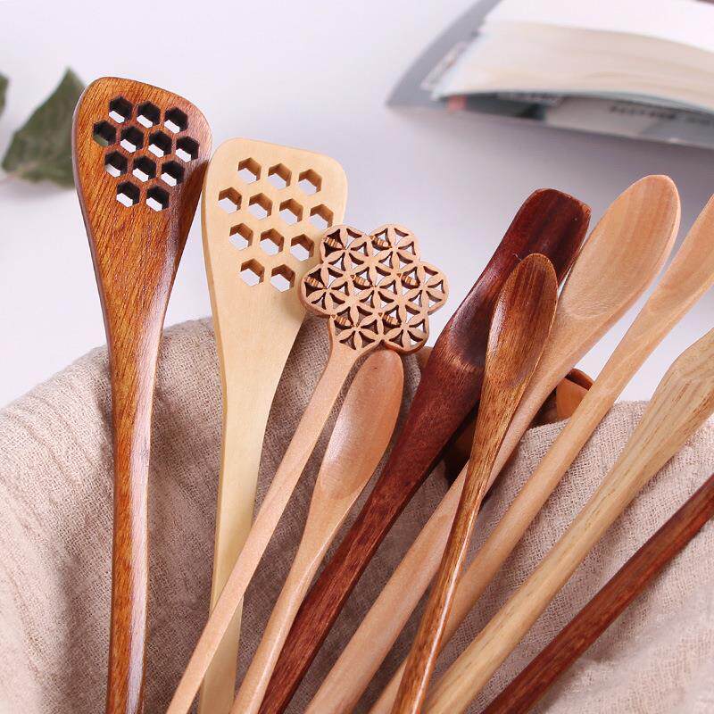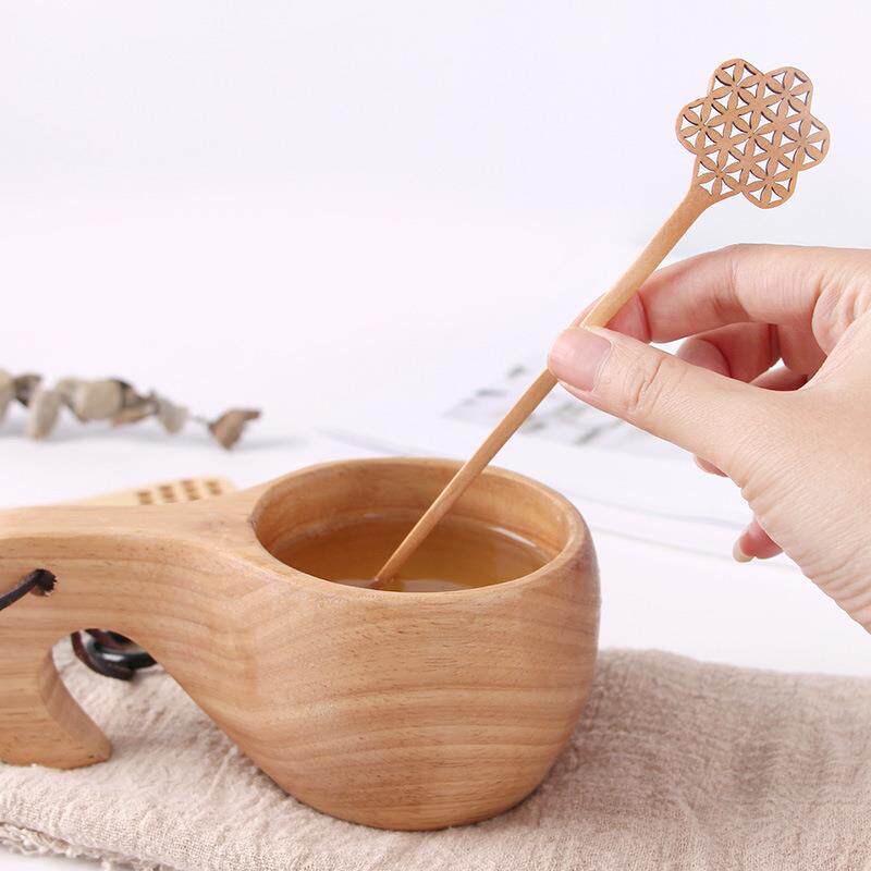 ins fruit tea sprint coffee spoon log solid wood stirring stick lengthened shank milk tea deity Cute Tune Honey Stick