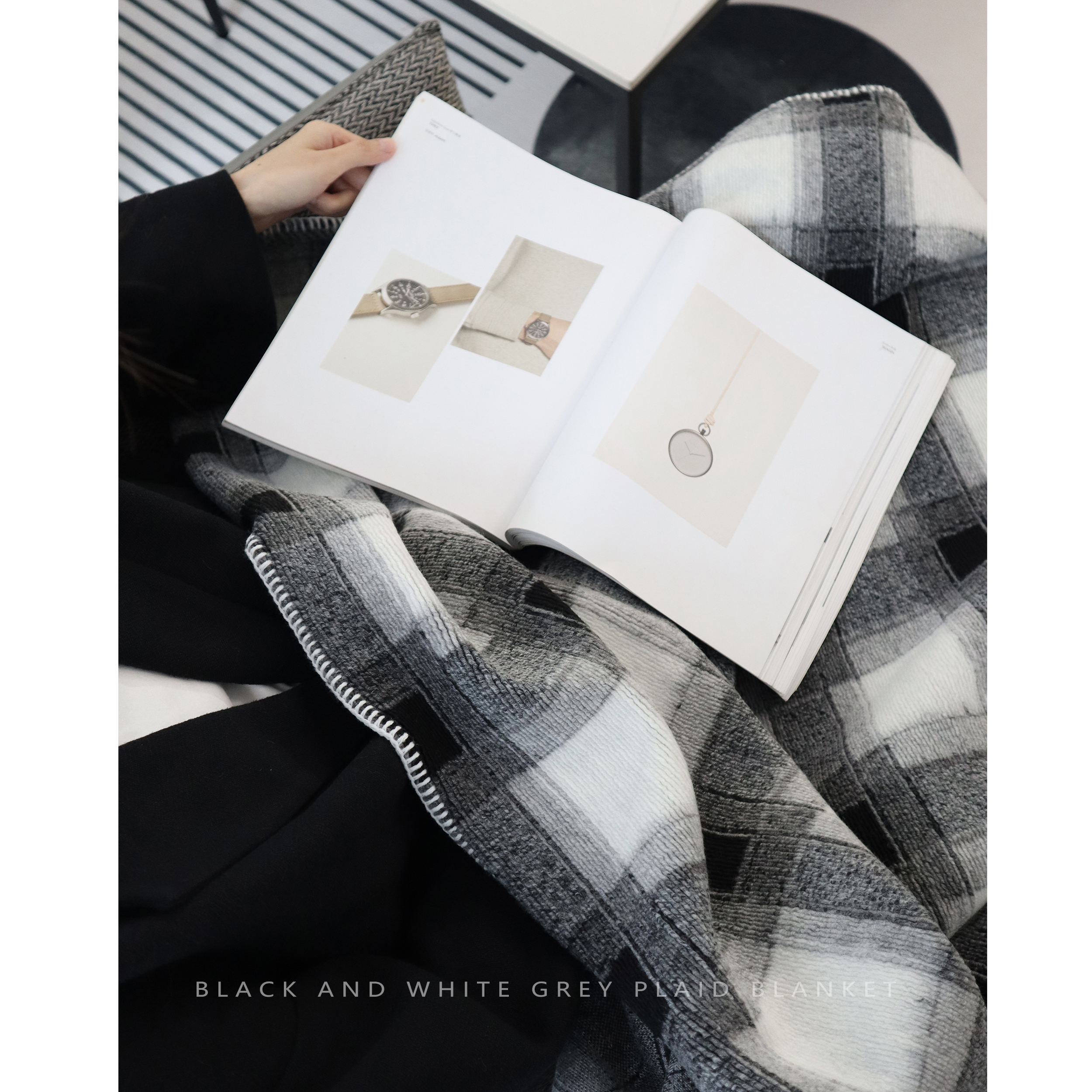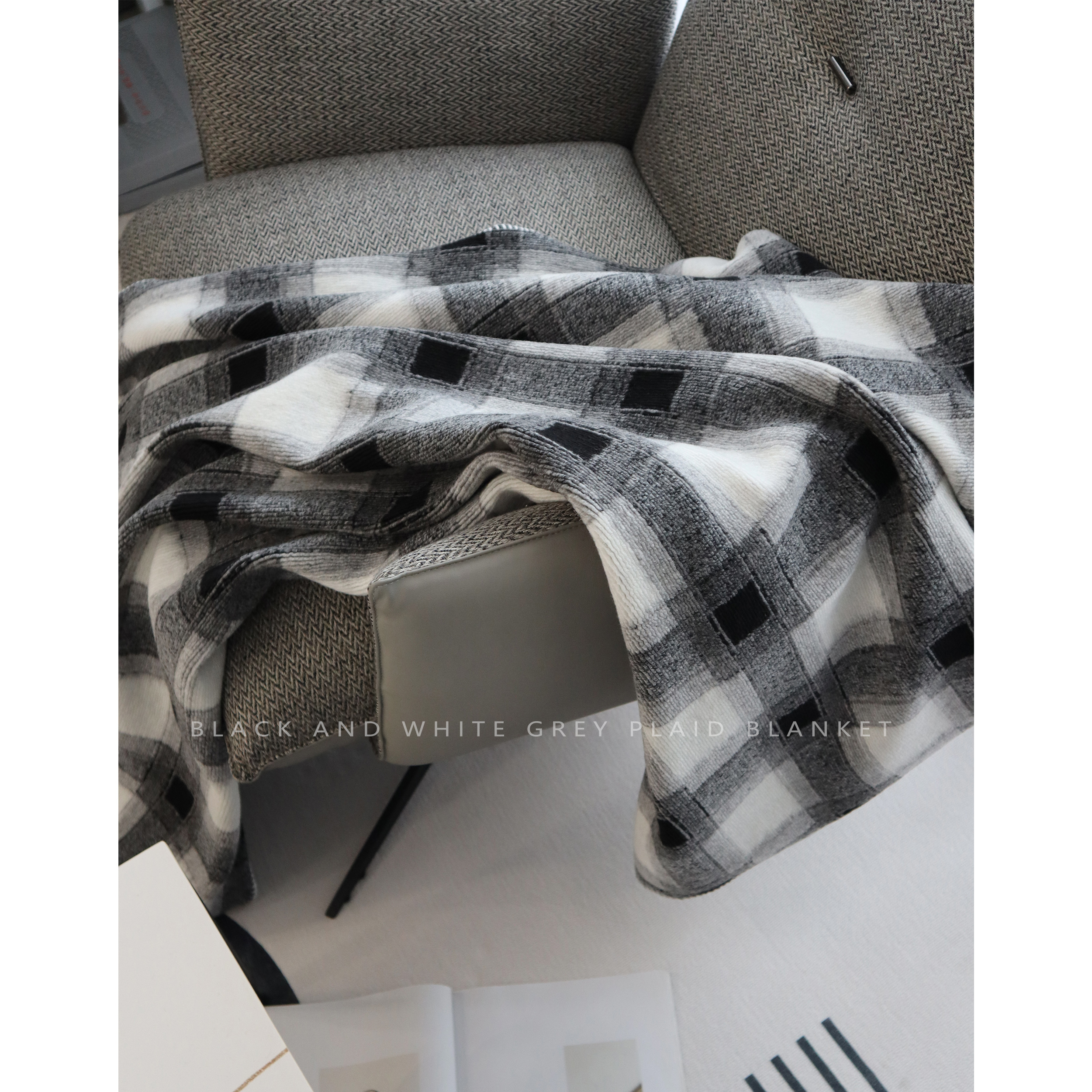 Black and white gray plaid leisure sofa with blanket simple design handmade bed end towel sofa cover cloth house still wind home blanket