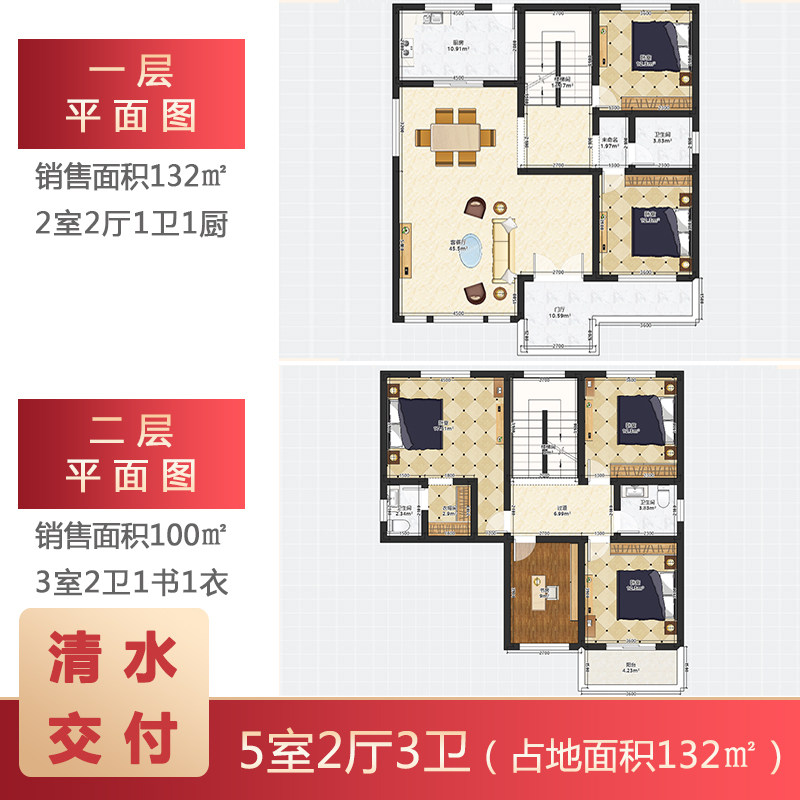 Rural Self-Built House Design Drawings Two-story Three Floors Oo-style Net Red Small Villa Effect Fruit Tutruth House Full Construction-Taobao