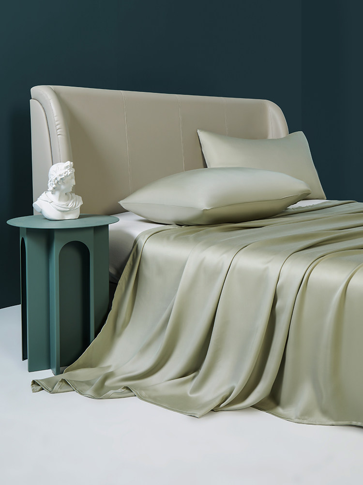 100 Tencel four-piece set of solid color simple high-end light luxury ice silk cool feeling silky naked bed sheet summer
