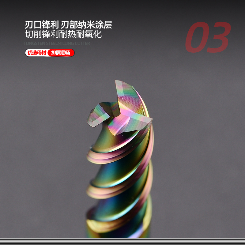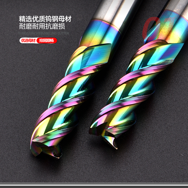 60-degree tungsten steel colorful aluminum special alloy milling cutter 3-edged high-gloss coating wear-resistant extended flat-bottomed milling cutter cnc cutter