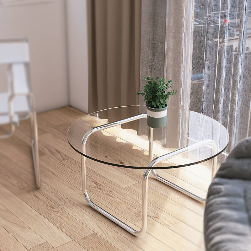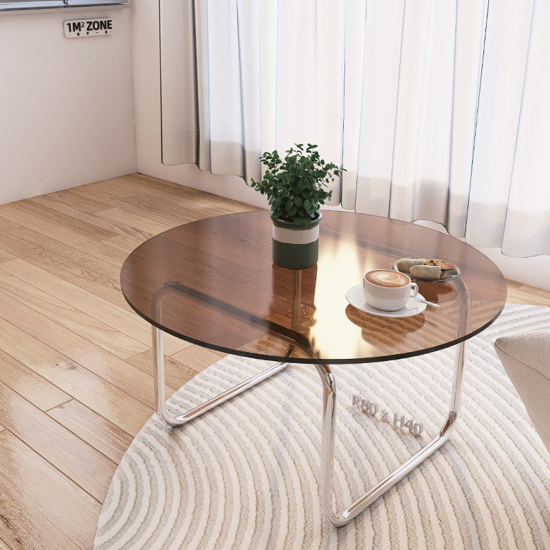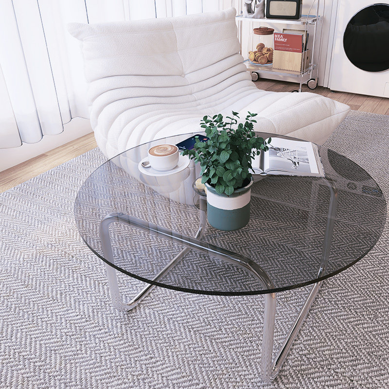 Net Red Ins Cream Style Black Round Coffee Table Small Apartment Stainless Steel Design Tempered Glass Short Side Table - Taobao