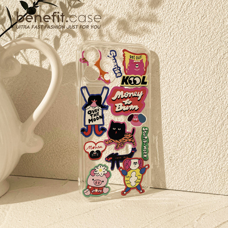 Benefit cartoon creative animal stickers apply Apple 13promax mobile phone protection shell iphone12 silicone mini soft shell xsmax personality xr fucked up 8