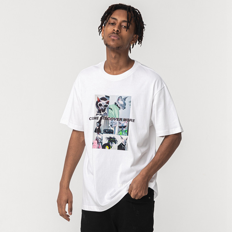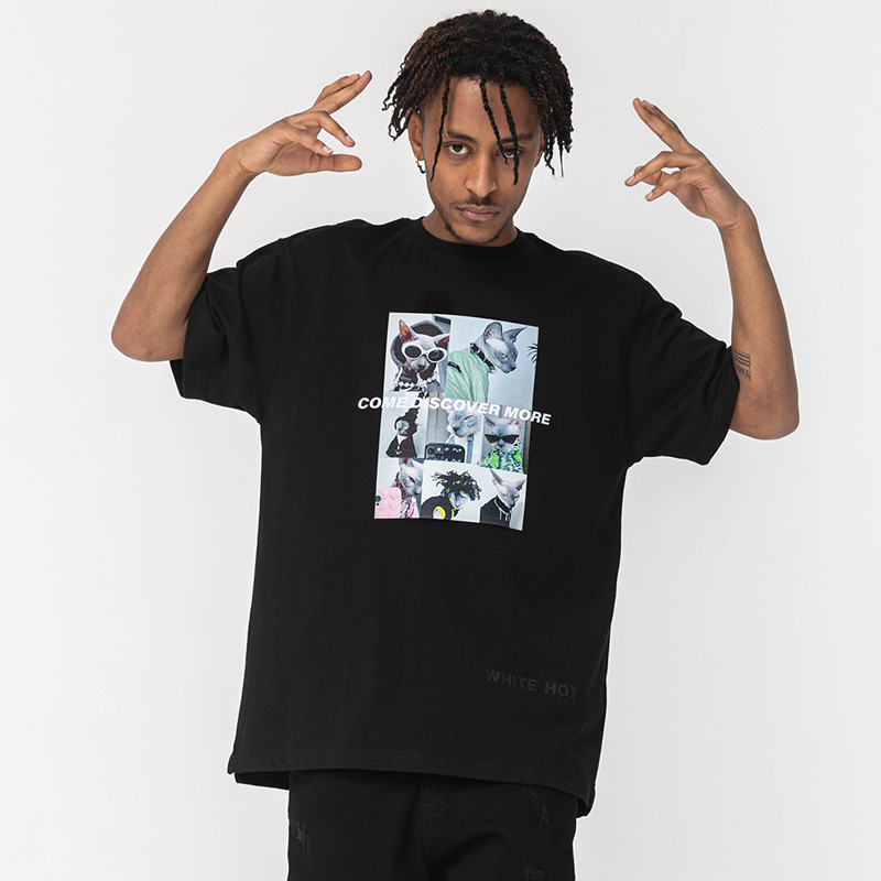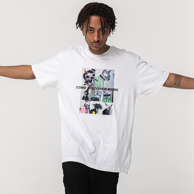 WHITE HOT Sfinks Cat Collection Print Letter Leisure Short Sleeve T-shirt Couple Style