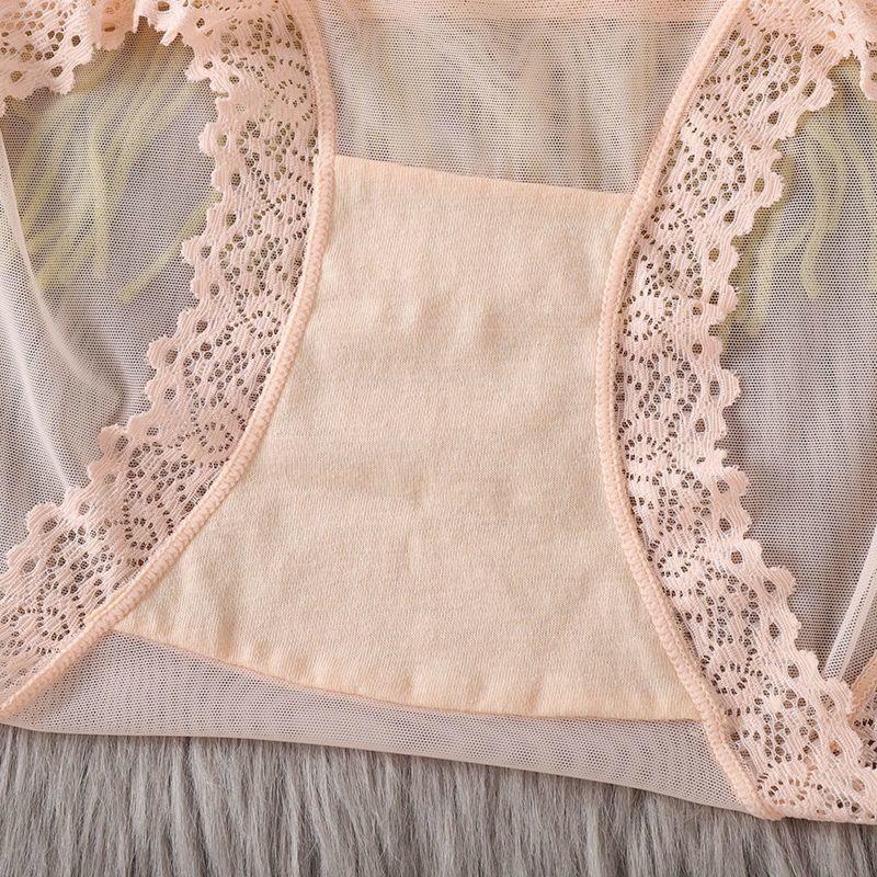 Article 1-3 Sexy Briefs Female Lace Mesh Veil transparent mid waist No marks Large size Sizes Quick Dry Triangle Pants Cotton Crotch Four-corner Pants