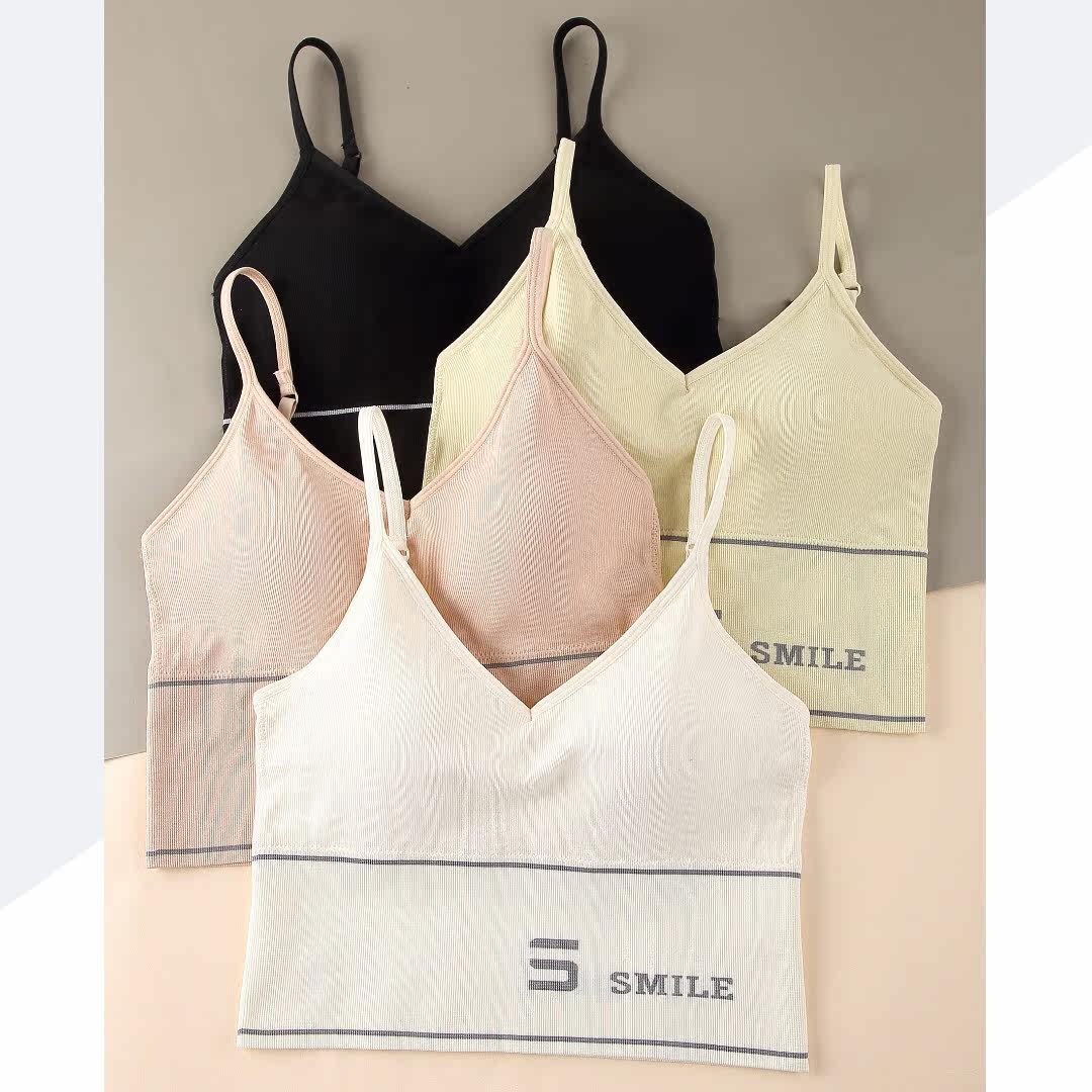 Cool women's underwear Meback bra integrated vest No steel ring Girl fixed cup Summer anti-walking light harness