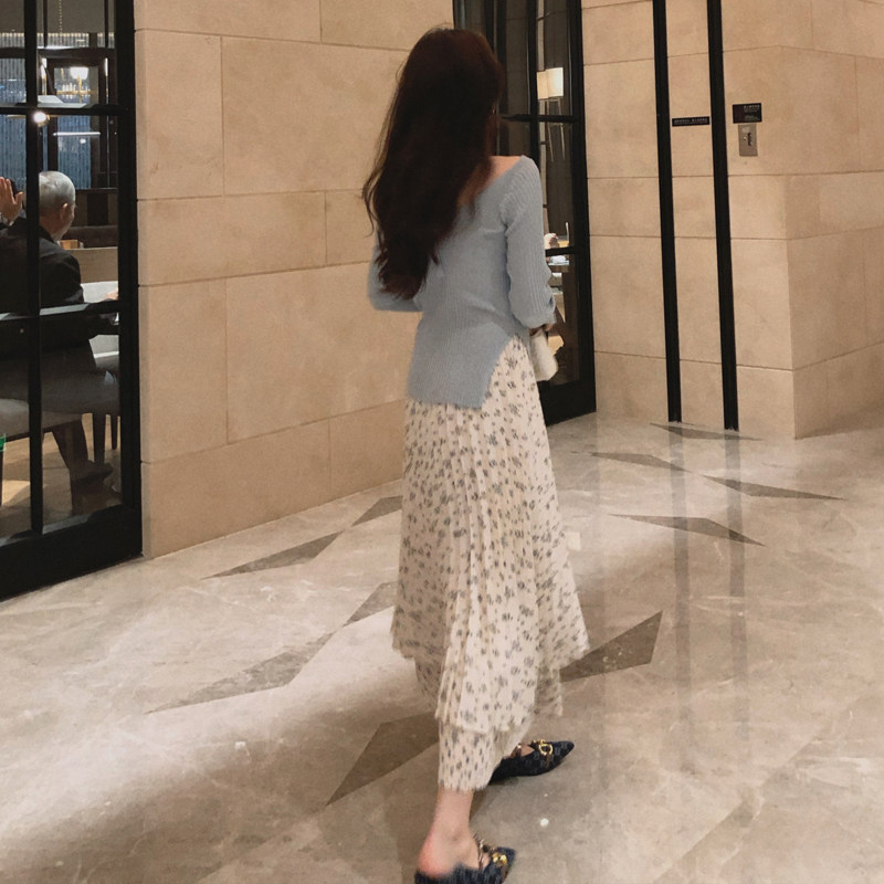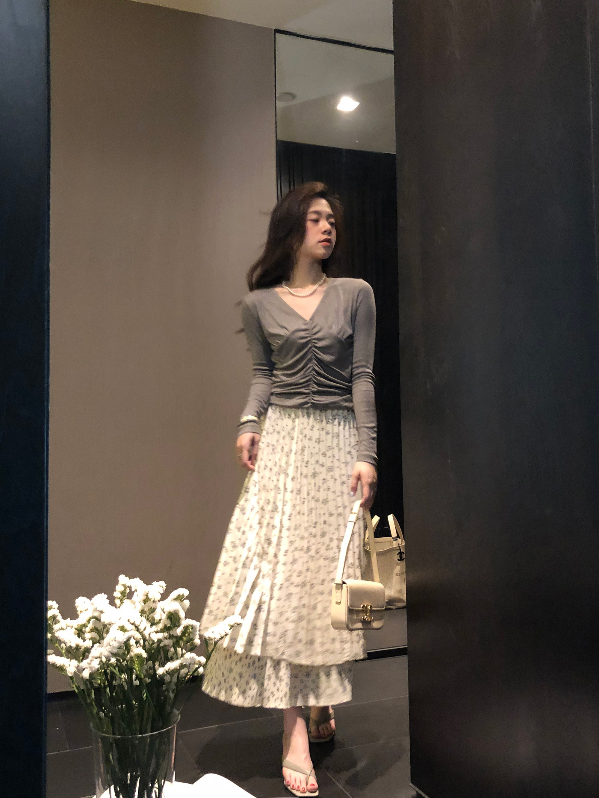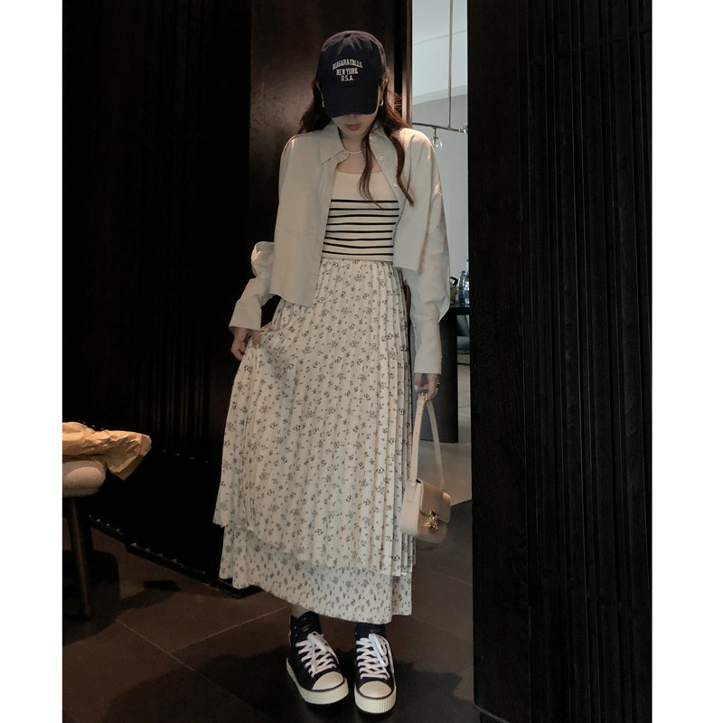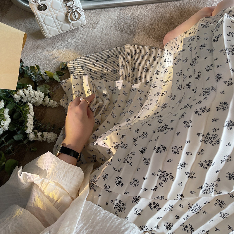 TMH STUDIO Monet's Garden French floral skirt women's summer pleated design mid-length skirt