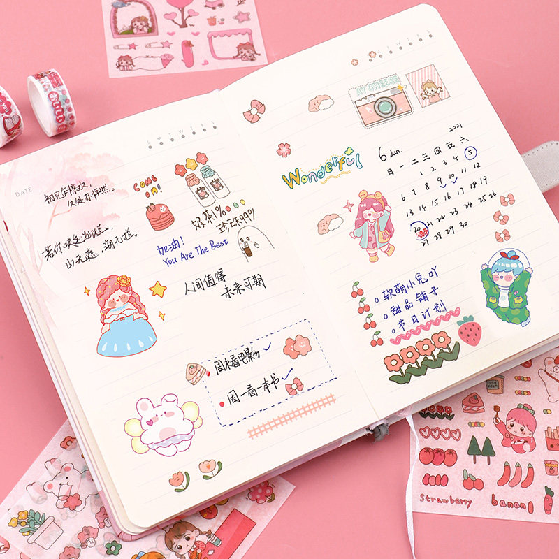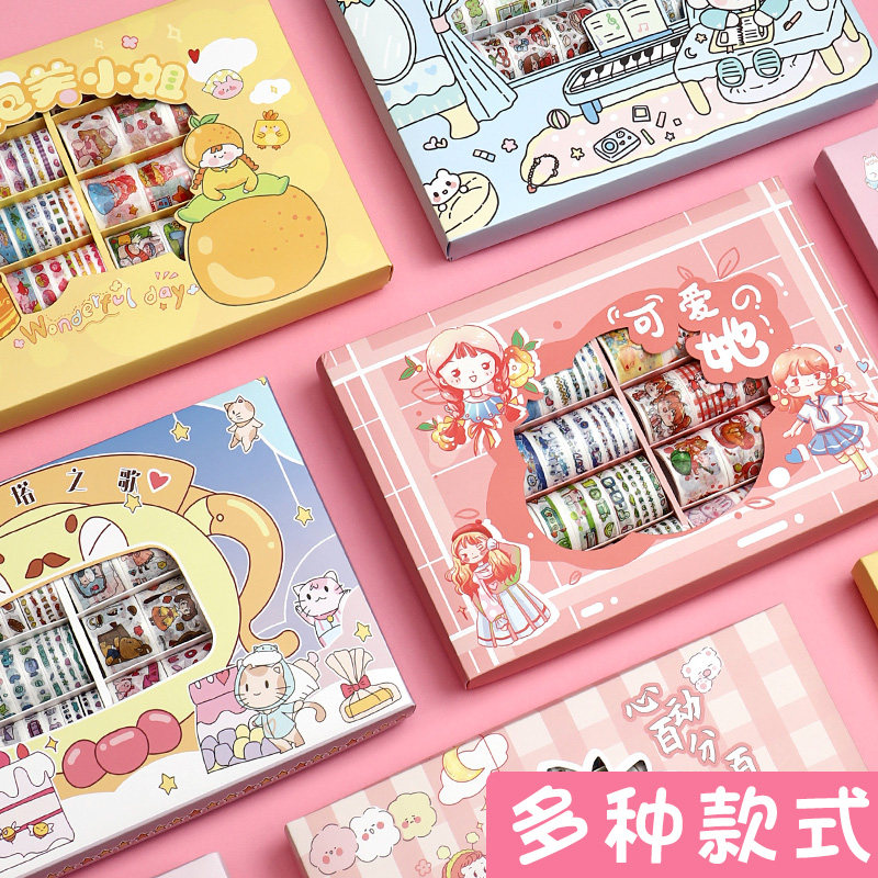 100 rolls hand account tape sticker children girl heart cute wind cheap hand account sticker set color and paper hand account book gift box antique style cartoon girl cane tape tape diary decoration