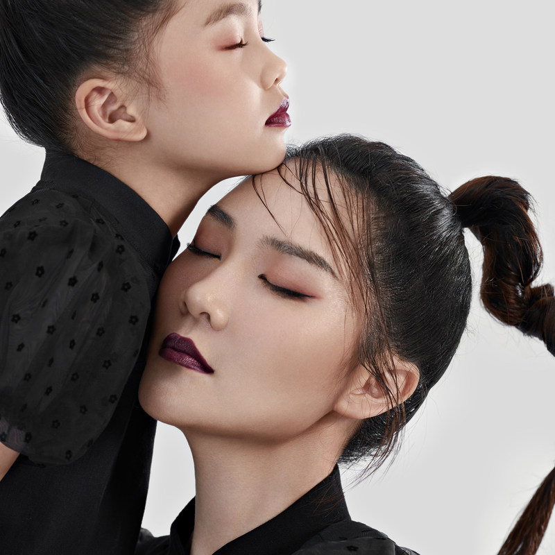 Mother and daughter in a dress.