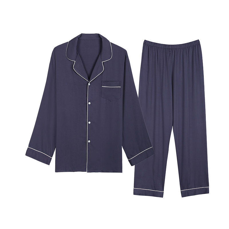 IIZZINI special price clear cabin ~ pyjamas male spring autumn long sleeves goon satin wool minimalist long pants blue stay-at-home suit