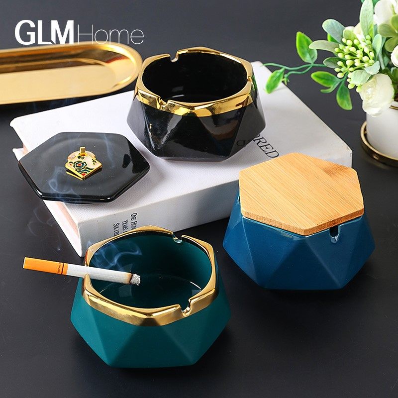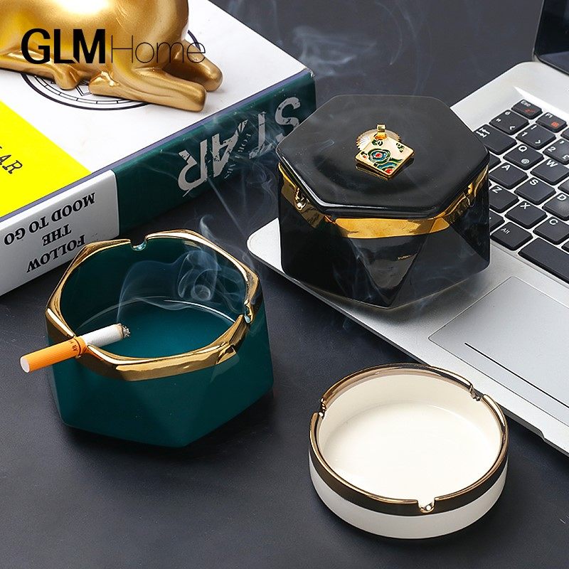 Nordic Light Extravagant Luxury ceramic Ashtray Home Living Room Creative Personality Trend With Lid Anti-Fly Ash Decorative Swing