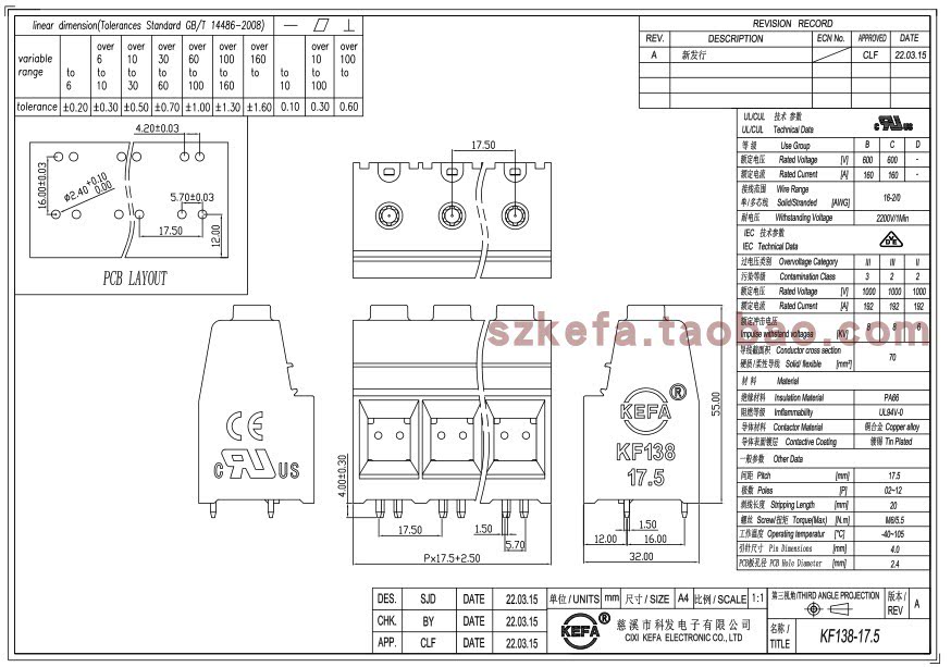 KF138-17 5mmKF138M-17 5mm Screw PCB terminal substrate eco-friendly products