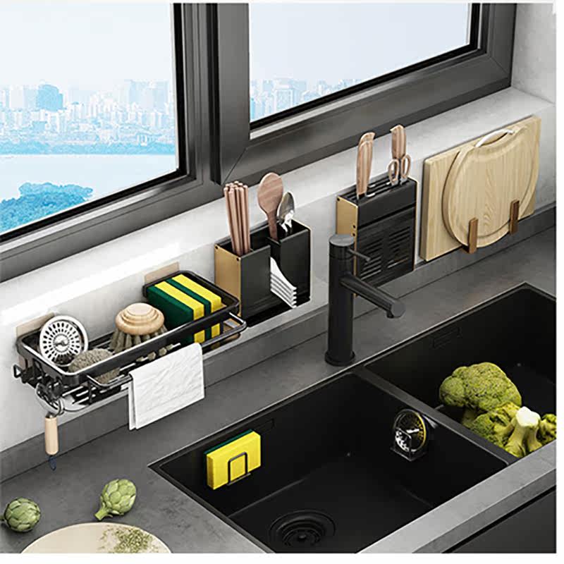 Kitchen Rag Rack Free of perforated wall-mounted sink Dishwashing Pool Drain Sponge Cleaning Finely-placed Hanging Basket Containing theiner