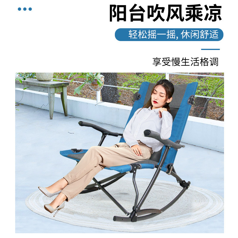 Leverest Foldable Backrest Rocking Chair Outdoor Portable Casual Chair Sub Sloth Chair Balcony Patio Beach Chair Lunch Break