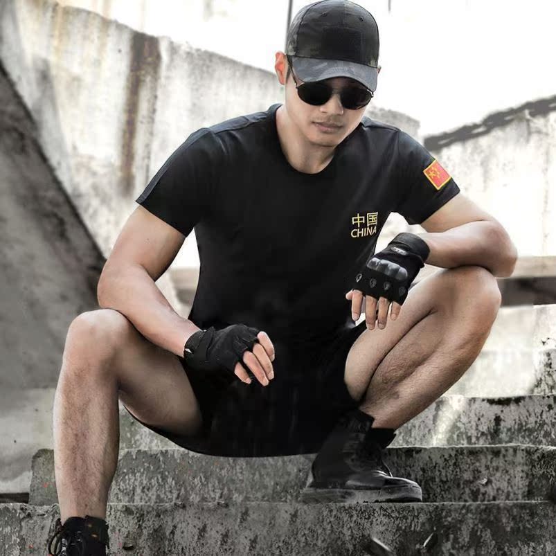 Embroidery Chinese shorts pure black No words T-shirt embroidered Chinese T-shirt embroidered wolf with no words T-shirt plus embroidery Chinese shorts embroidery Chinese T-shirt plus embroidery Chinese shorts embroidered wolf head T-shirt plus embroidery China