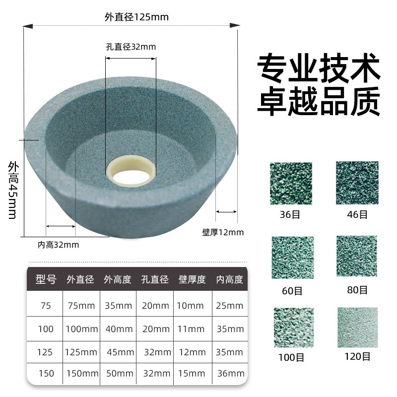 Green Silicon Carbide GC Bowl Type Grinding Wheel Tungsten Steel Alloy Cutter Grinding Wheel Grinding Knife Grinding Machine Grinding Wheel Rail Grinding