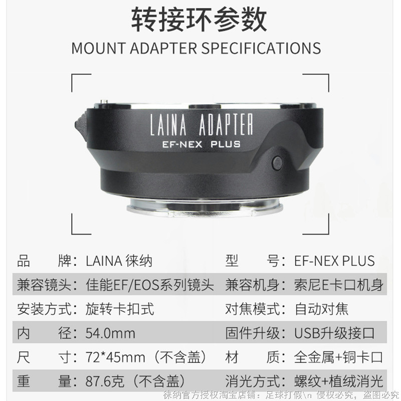 The Leiner PLUS is suitable for Canon EF EOS lens to Sony E FE NEX video autofocus adapter ring