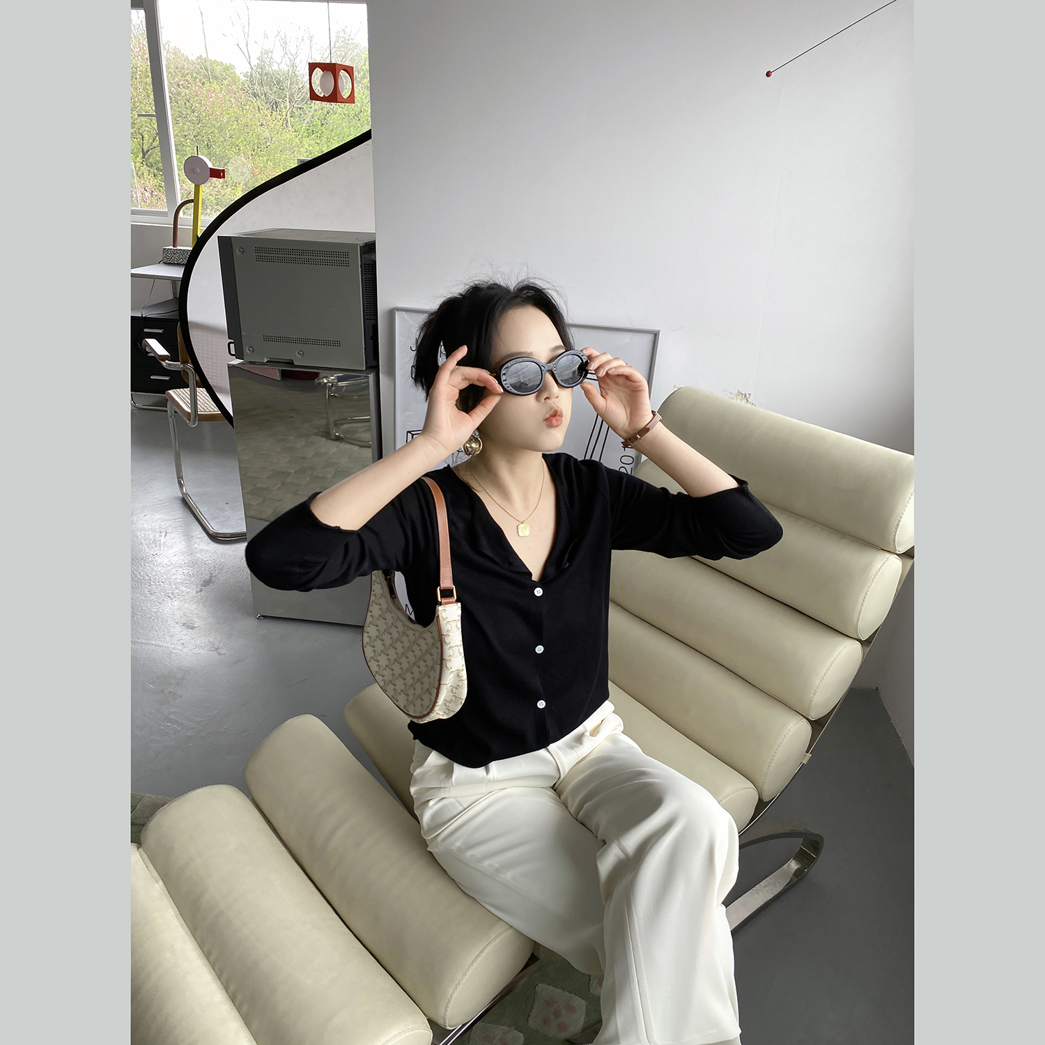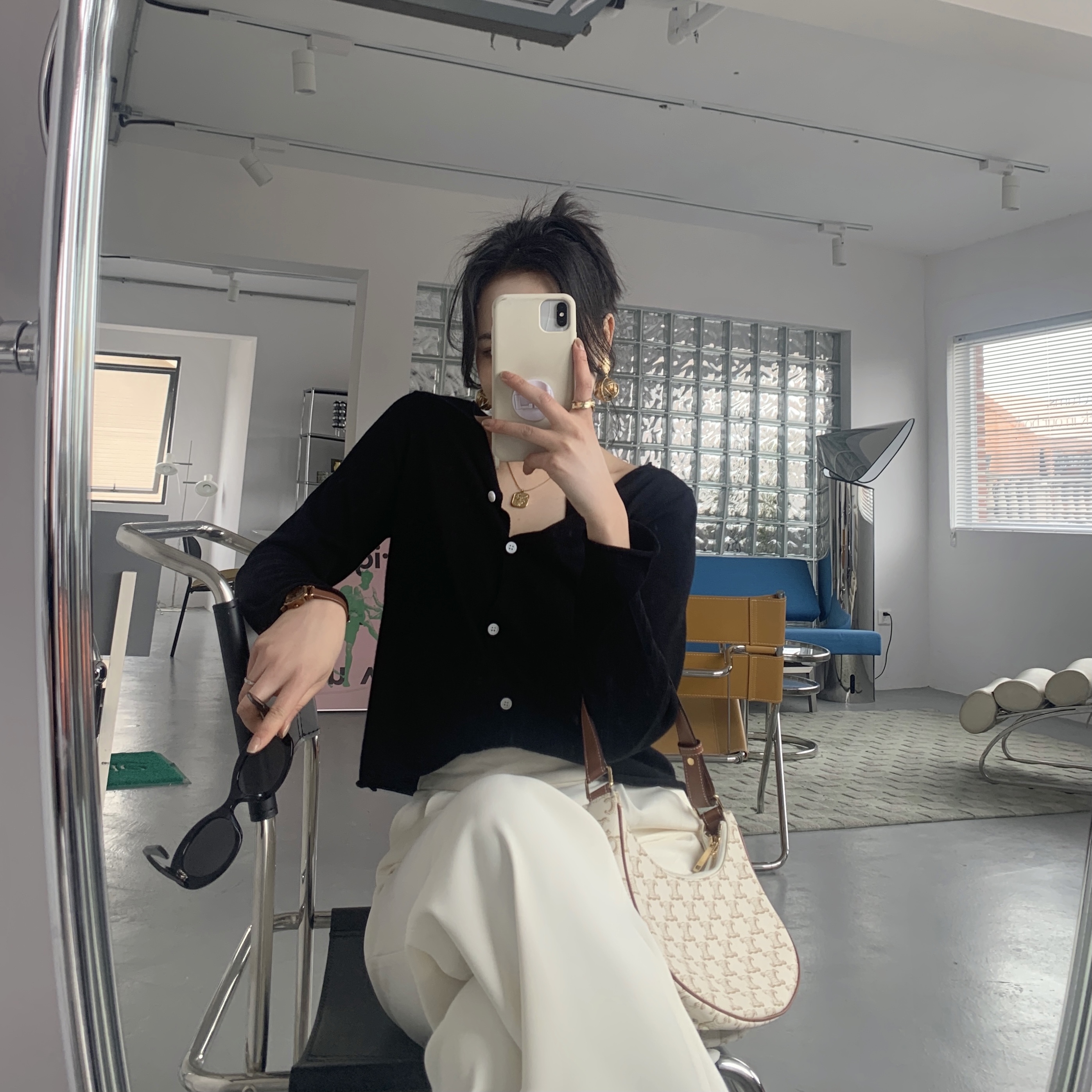 Pumpkin Valley silk wool and simple flat knit ~ 2022 spring and summer new long sleeves round neck-shirt woman Z1106