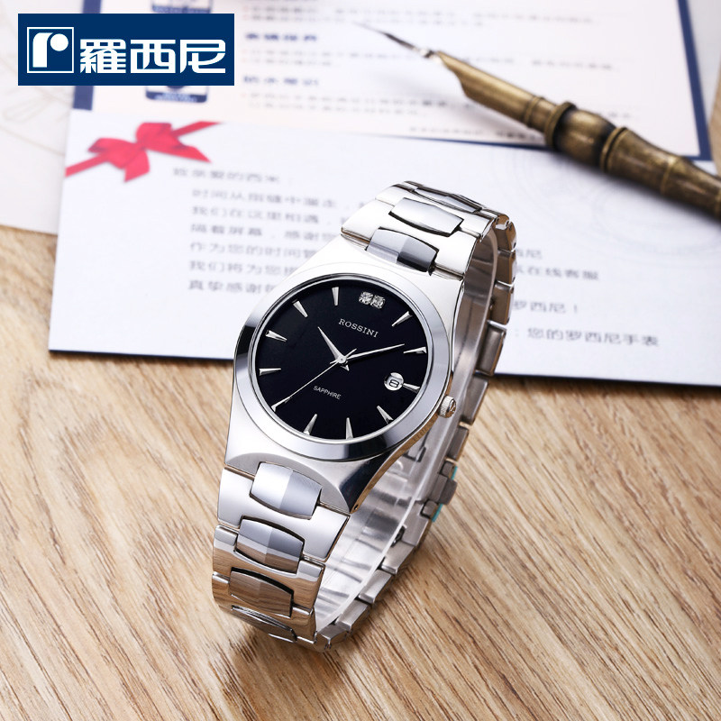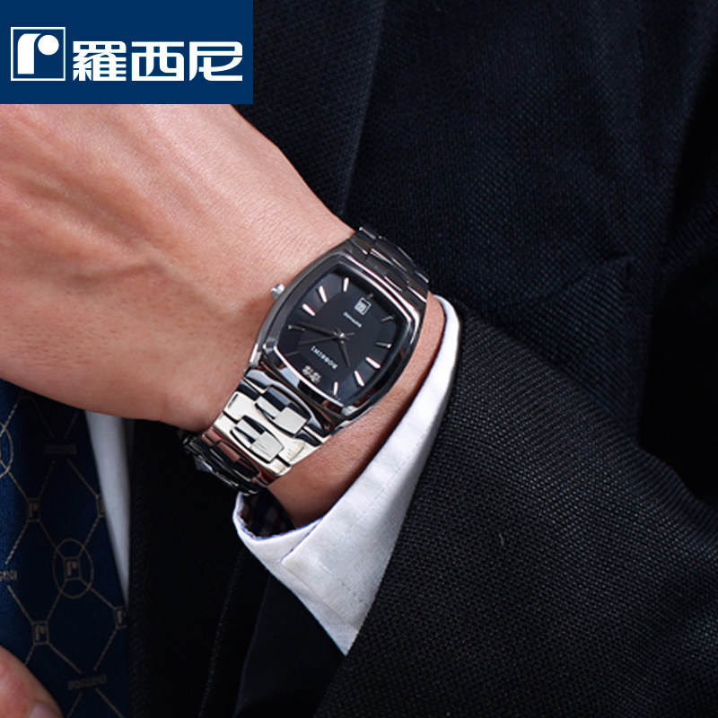Rossini watch male 1381 square tungsten steel with calendar business quartz men's watch 5455 waterproof watch counter