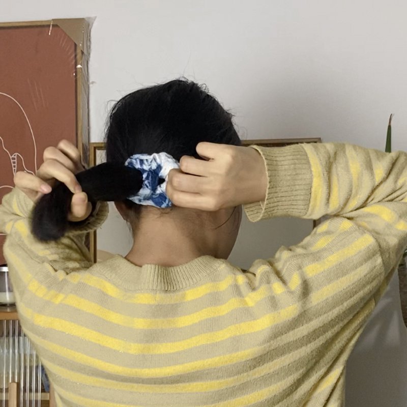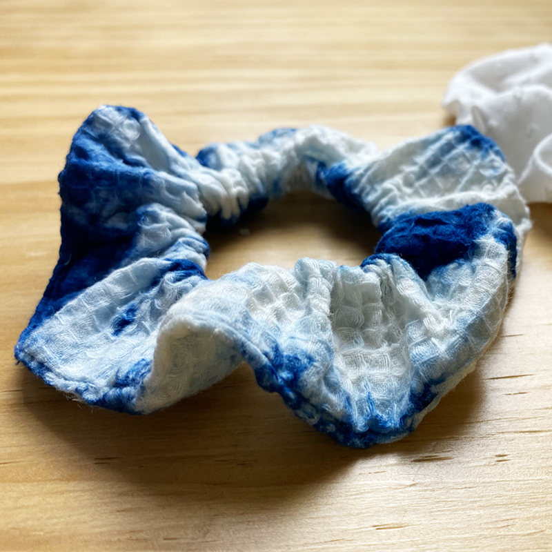 Plant dyeing blue dyeing printing and dyeing tie-dye cloth material ethnic style solid color hair ring white cotton material large intestine hair ring grid