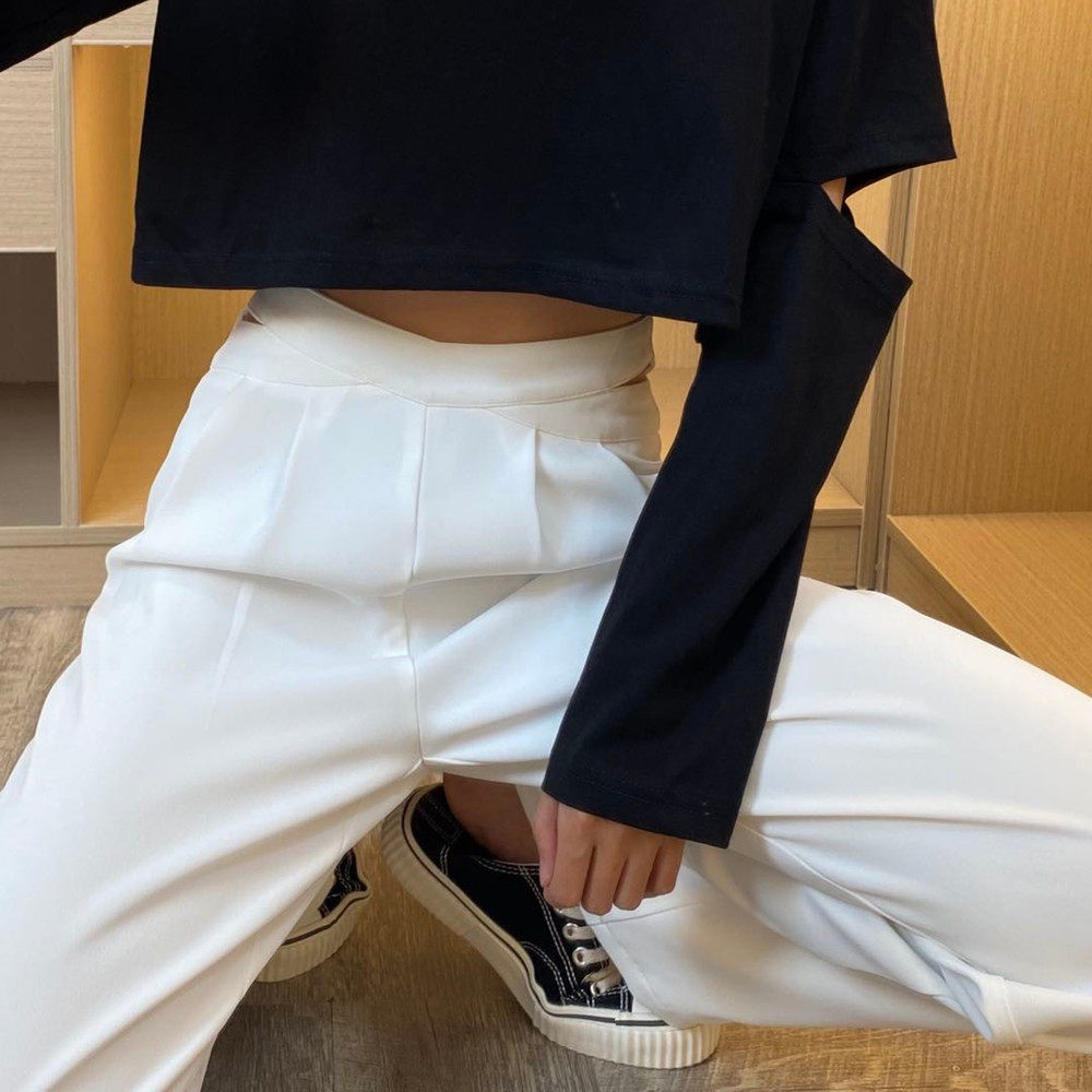 DESIGN SENSE CROSS 100 LAP PANTS 2022 Summer new high waist pituitary casual straight cylinder loose Western suit pants