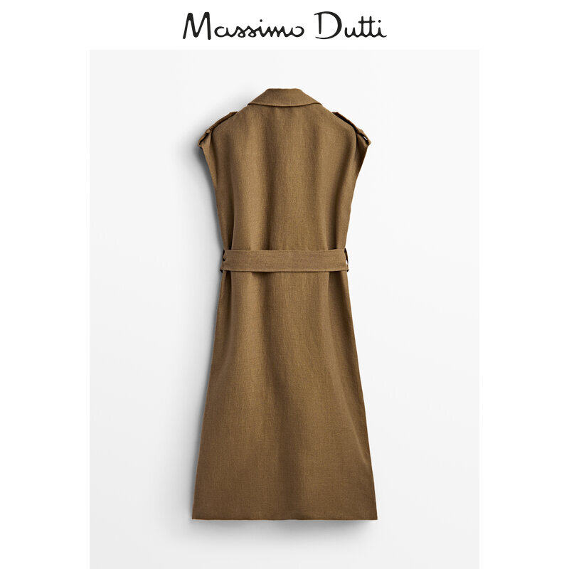 Spring and summer limited series Massimo Dutti women's clothing 2022 new pint of body version linen sleeveless long version of the dress 06767555505