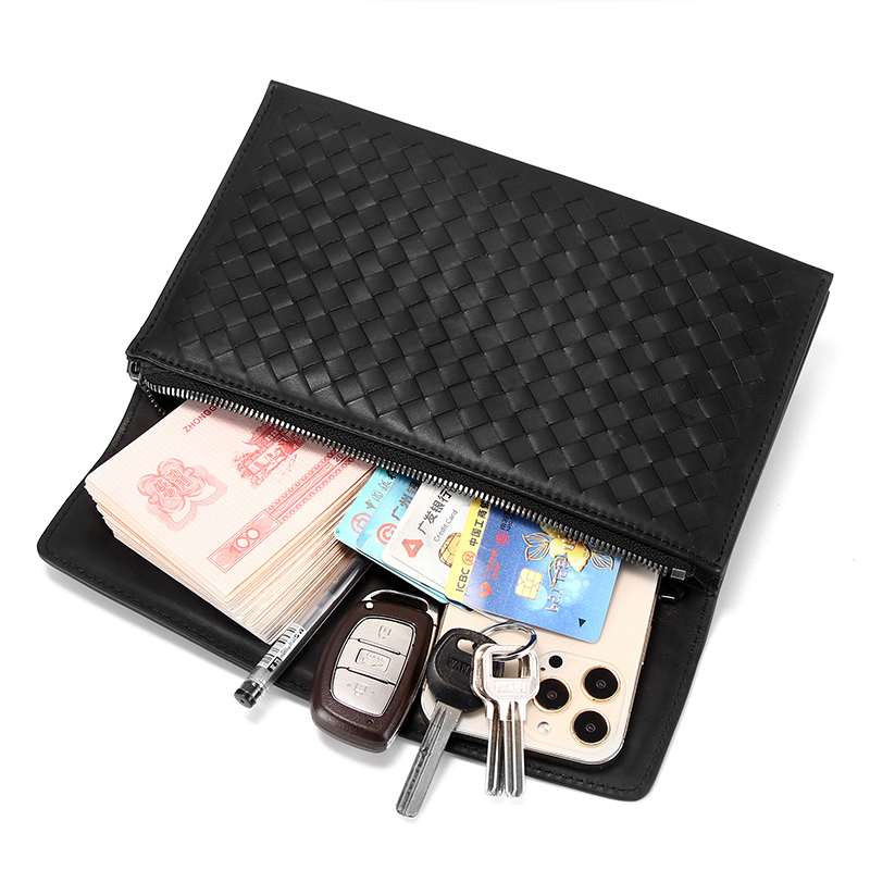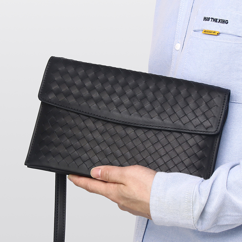 New Men Bull Leather Woven Handbags Genuine Leather Upscale Business Handbags Fashion Minimalist Bags Large Capacity Wallet