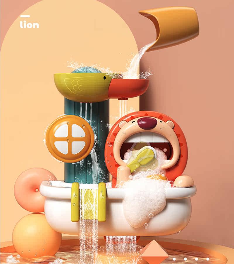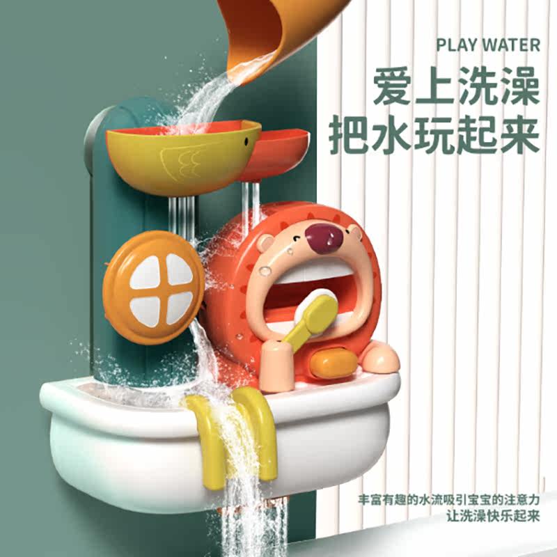 Children's bathroom toy lion spitting bubble turns sucker baby drama spray water spray bath plastic toys
