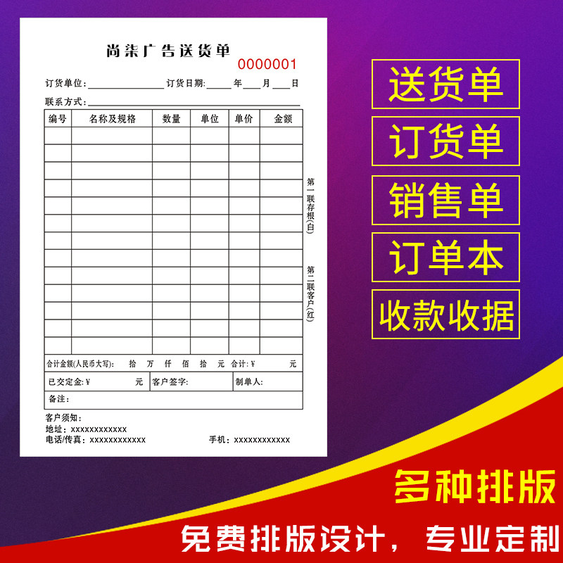 Delivery List III Customized Shipping Receipts2 Sales and Sales List Copies Copies Paper Four-tier Documents