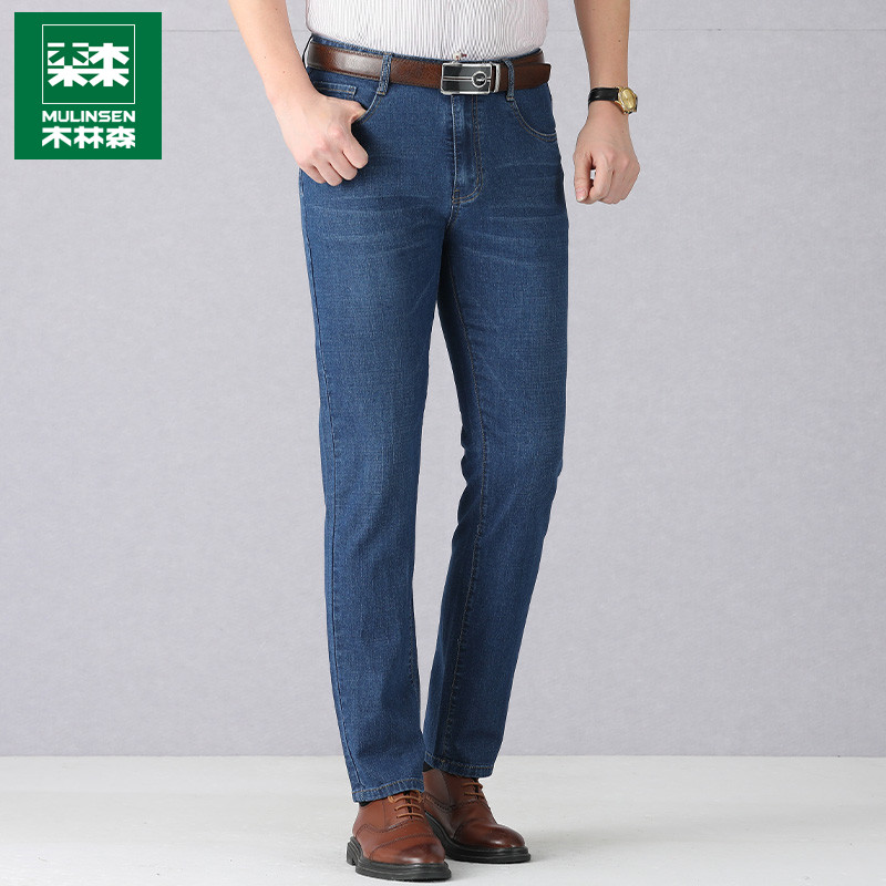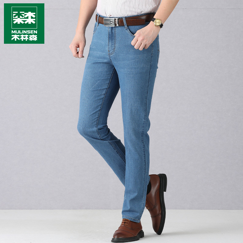 Wood Linson Straight Barrel Jeans Men's Summer Slim Fit Midlife Business Casual Dad Loaded elastic long pants