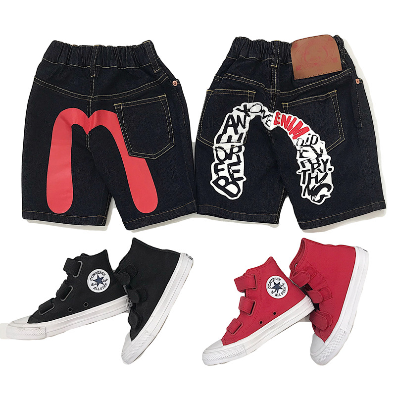 2022 Summer child male and female child male child middle child red M denim shorts code number of feet not greedy